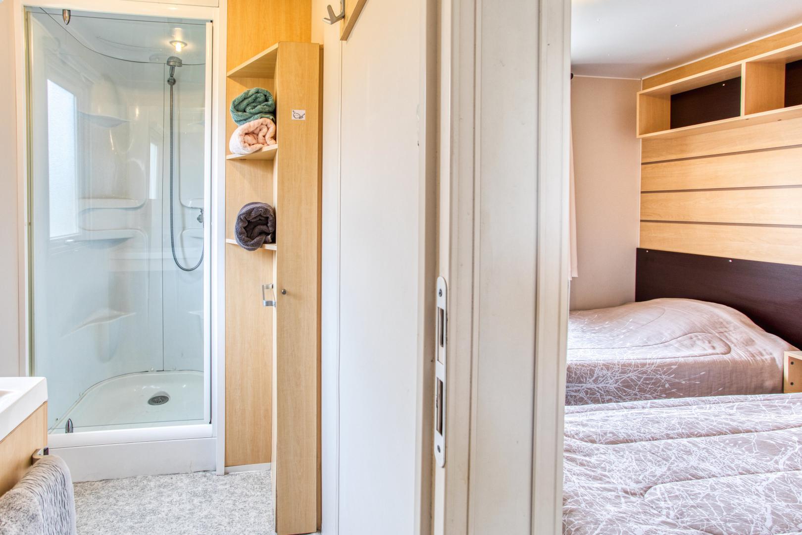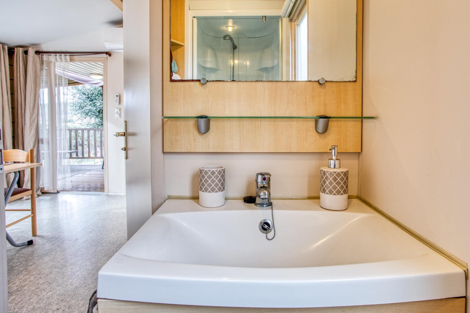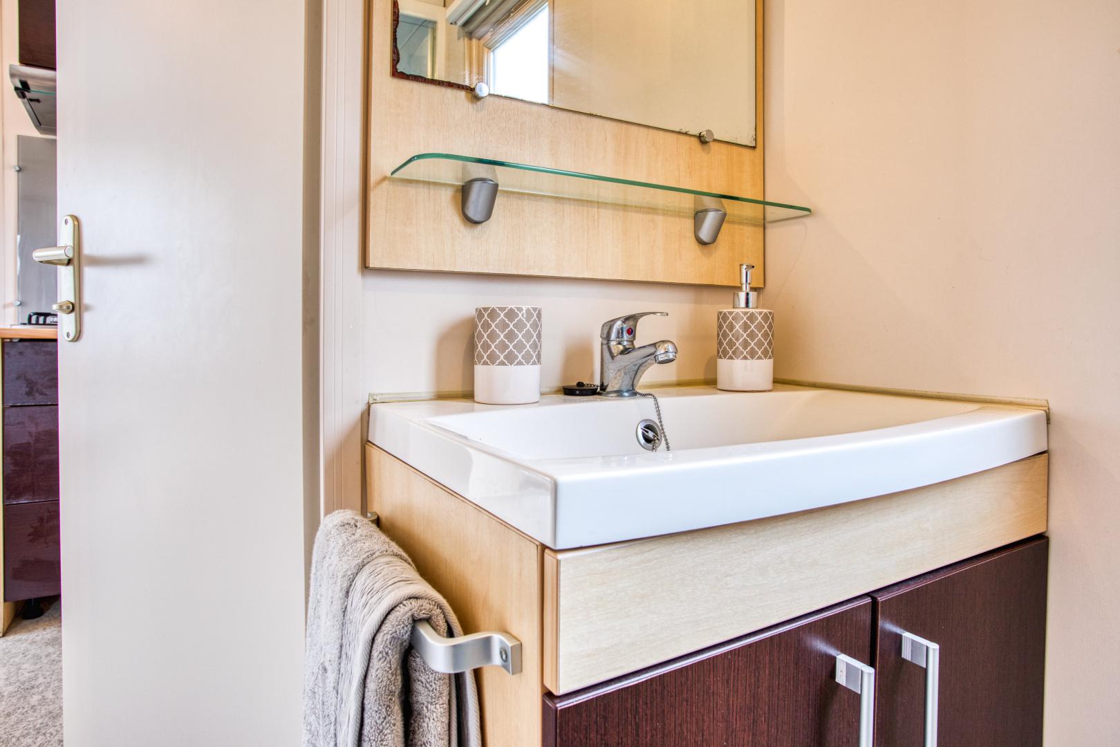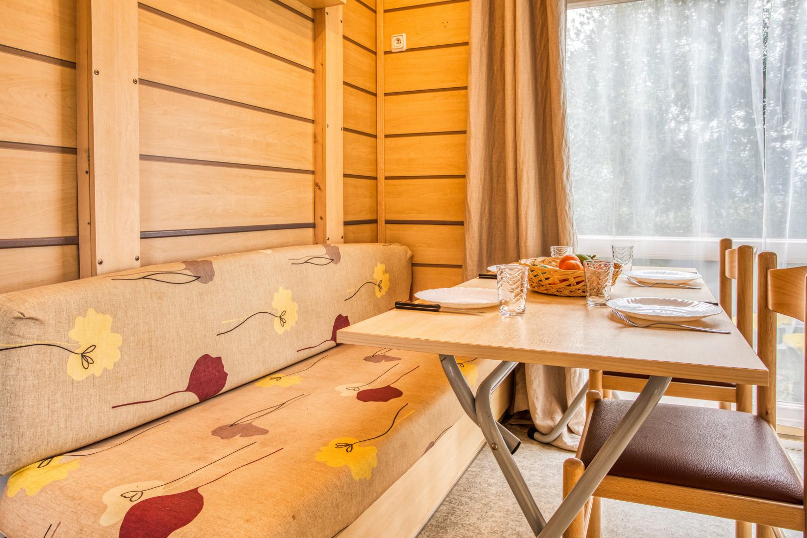 Ce mobil home fonctionnel et bien agencé peut accueillir jusqu’à 5 personnes.
