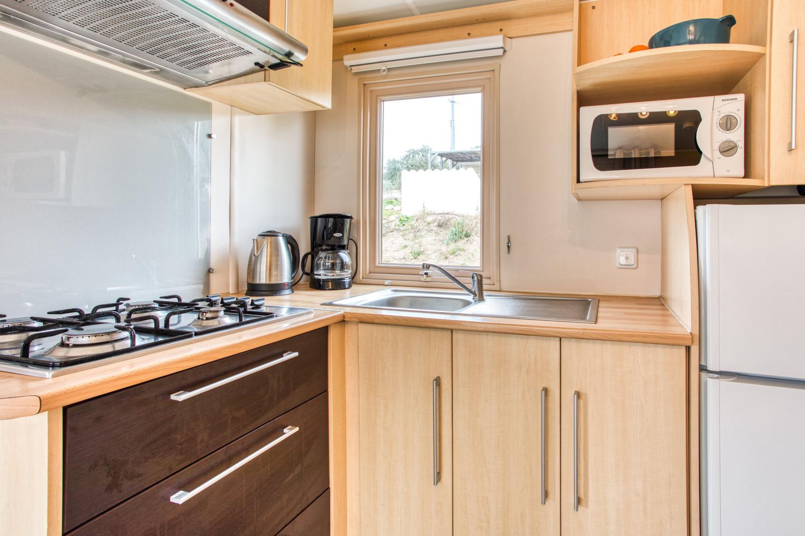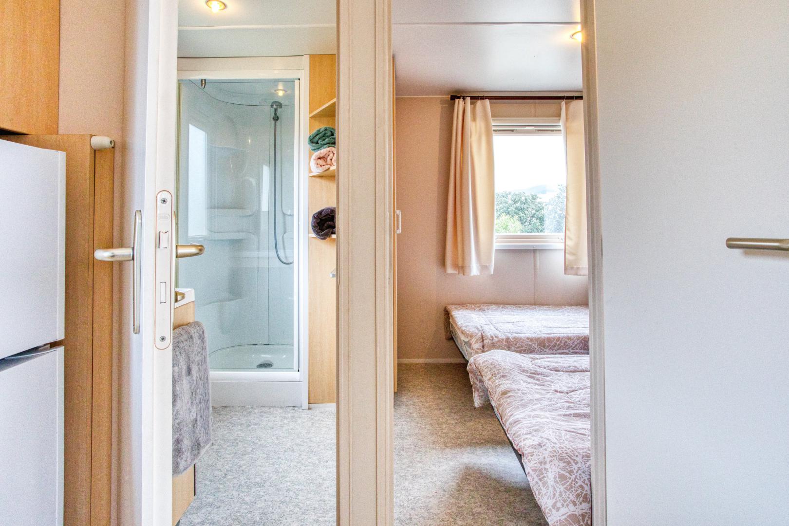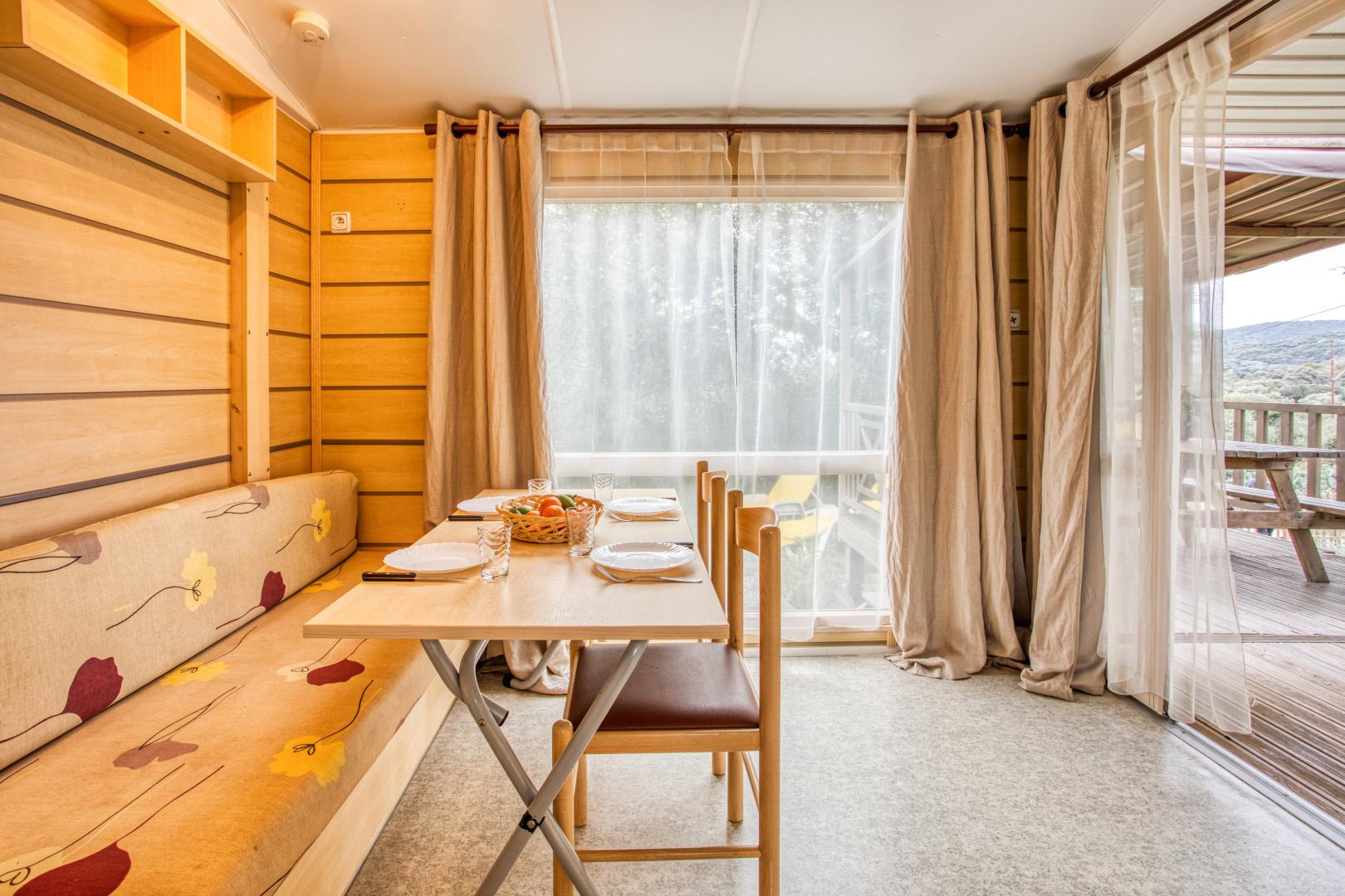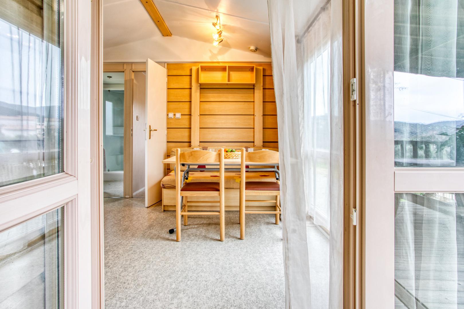 Ce mobil home fonctionnel et bien agencé peut accueillir jusqu’à 5 personnes.