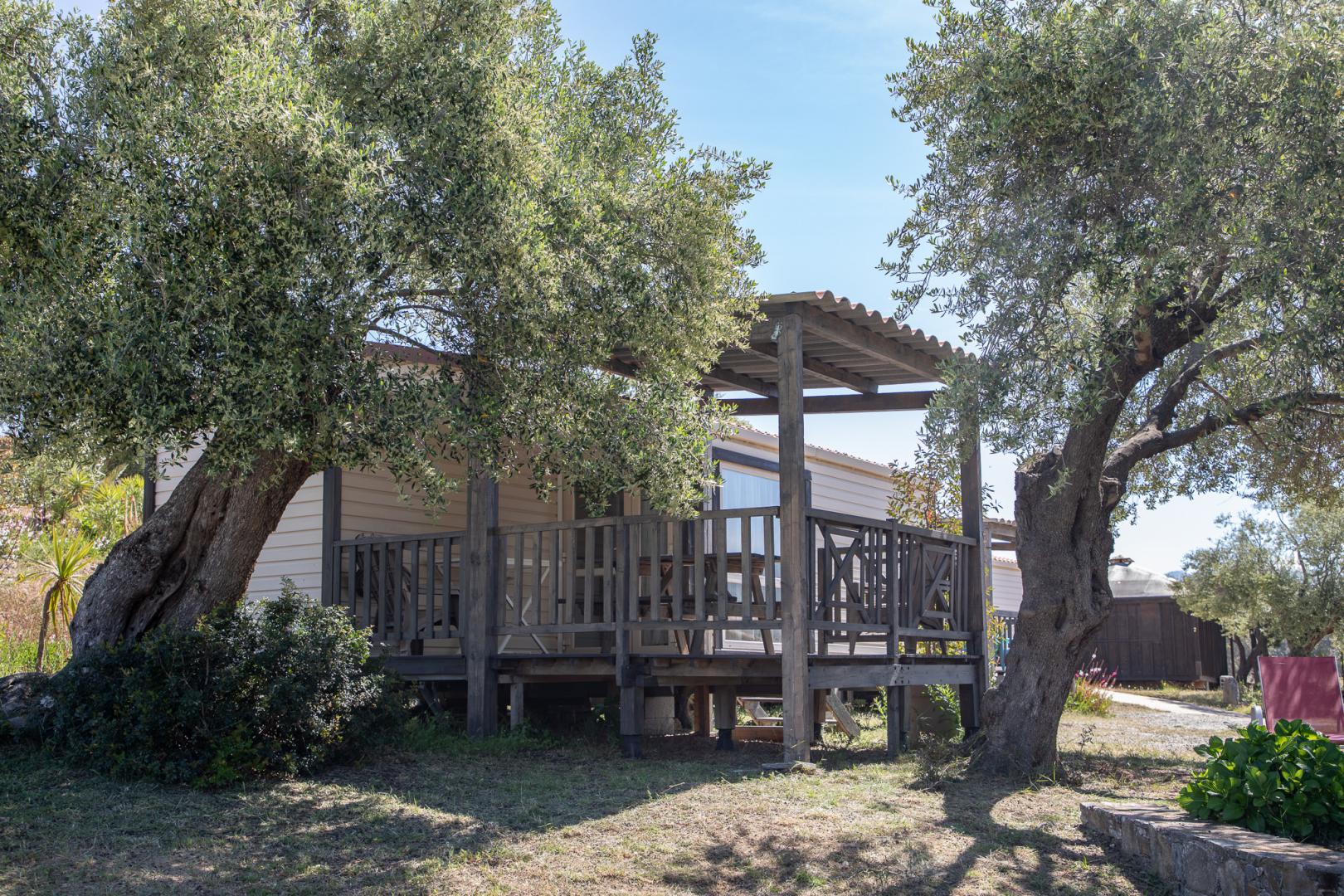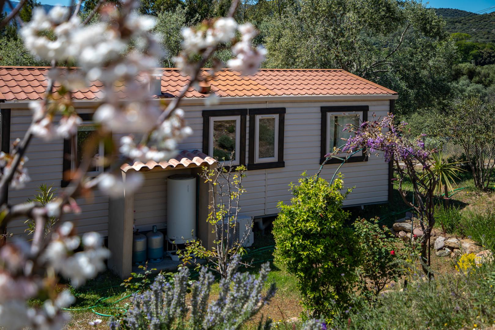 Profitez d’un séjour authentique et confortable en Balagne grâce à cette location de mobil home climatisé à Lozari, en Haute-Corse.