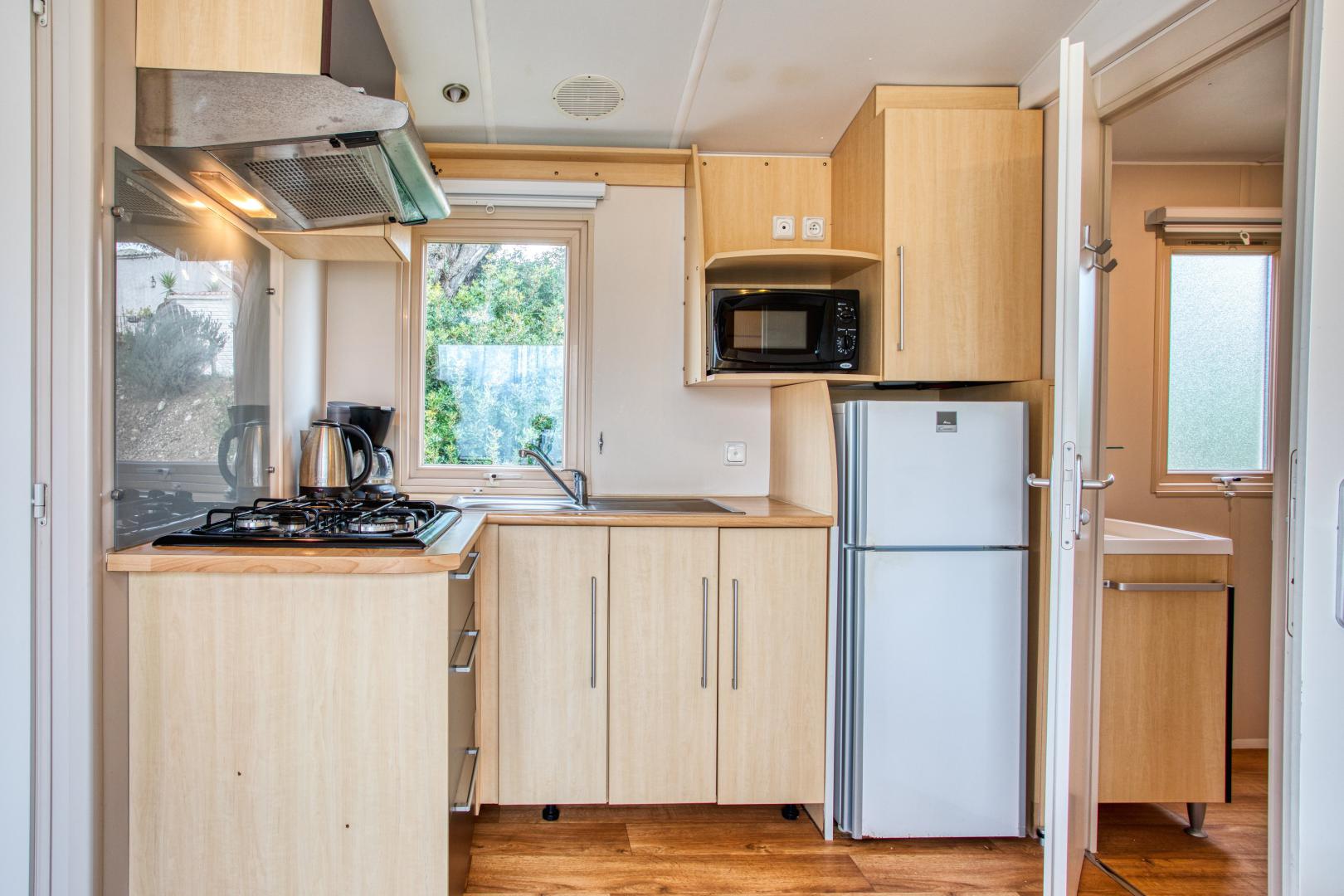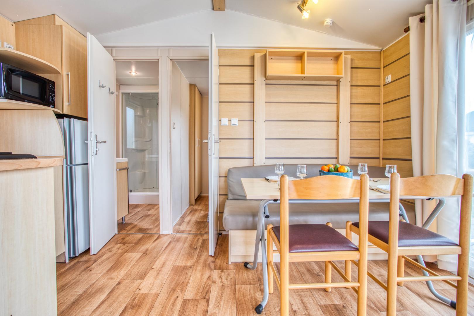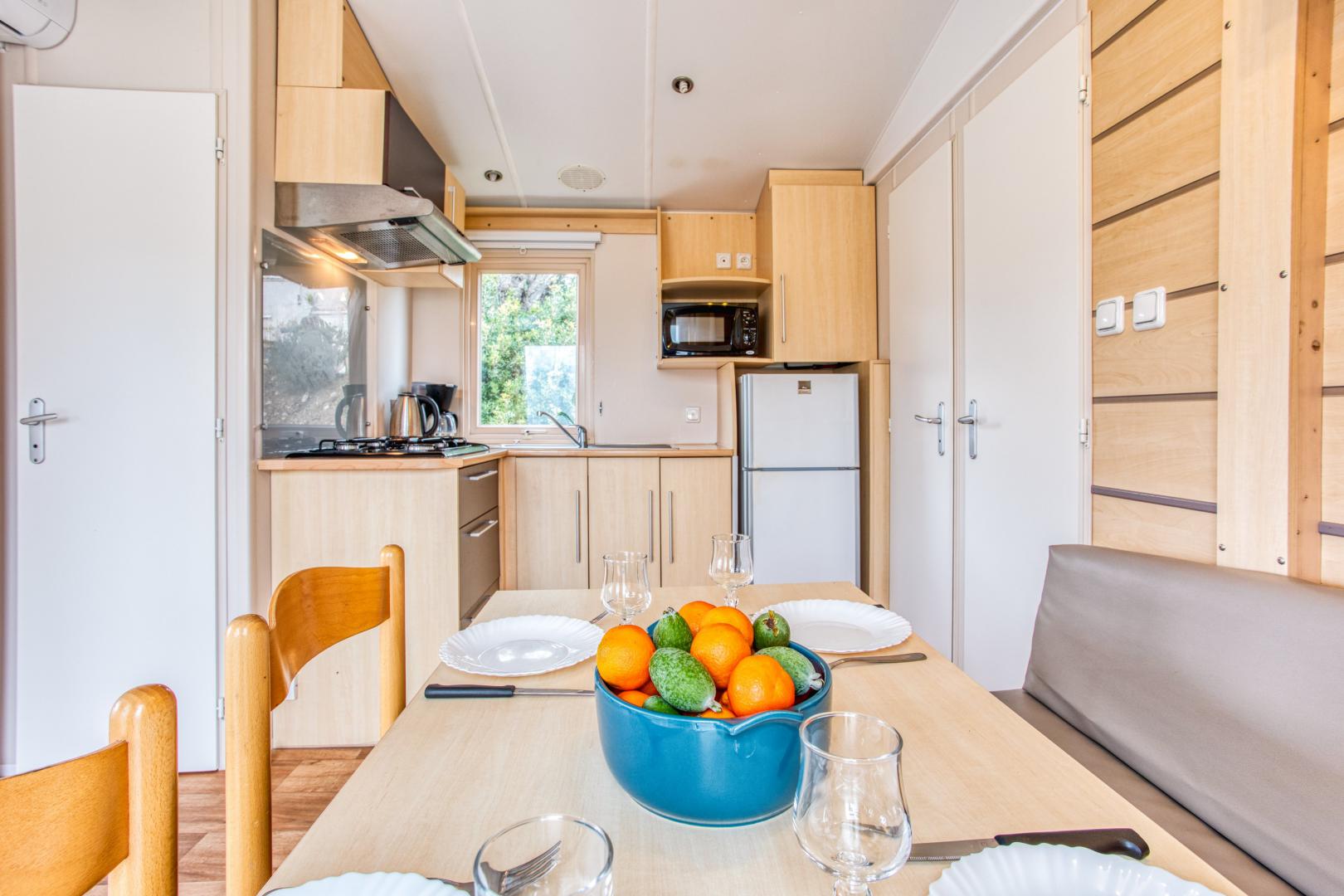 Le mobil home, parfaitement agencé et équipé, dispose d’une terrasse privative ombragée, d’un barbecue, d’un accès lave-linge, et peut accueillir jusqu’à 5 personnes. Il conviendra parfaitement aux familles à la recherche d’un séjour calme et pratique, proche de la mer.
