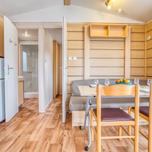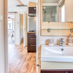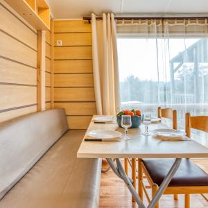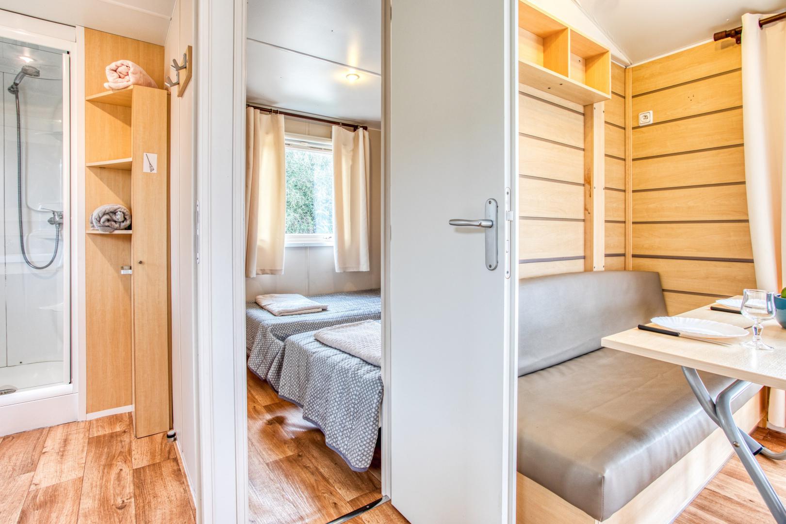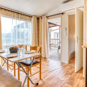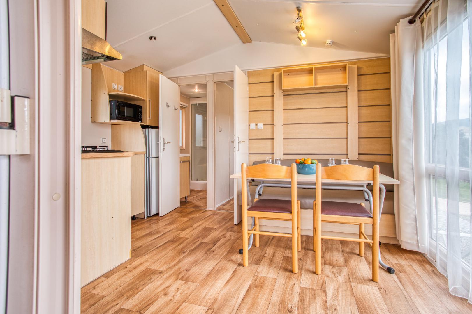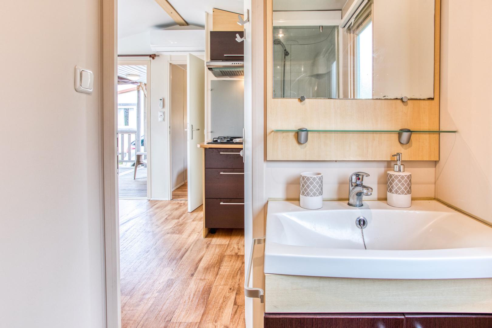 Le mobil home, parfaitement agencé et équipé, dispose d’une terrasse privative ombragée, d’un barbecue, d’un accès lave-linge, et peut accueillir jusqu’à 5 personnes. Il conviendra parfaitement aux familles à la recherche d’un séjour calme et pratique, proche de la mer.
