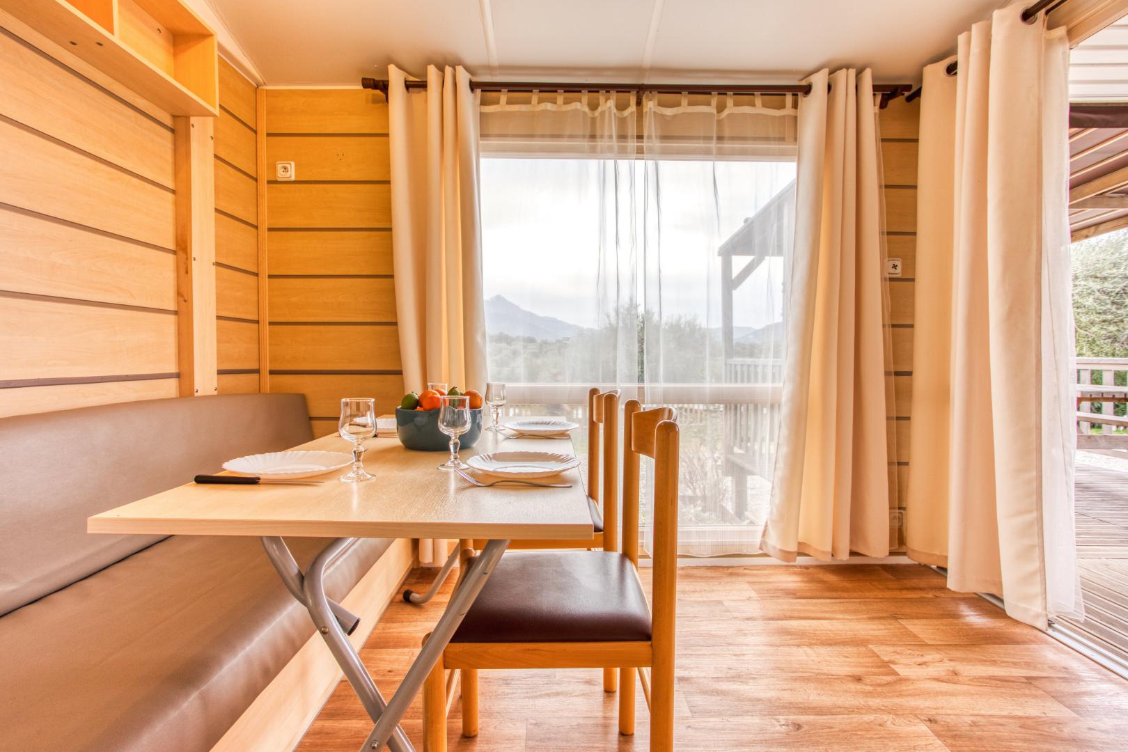 À partir de 280 € la semaine, ce mobil home constitue un excellent bon plan location Corse pour un séjour réussi, sans compromis sur le confort ou la localisation.
