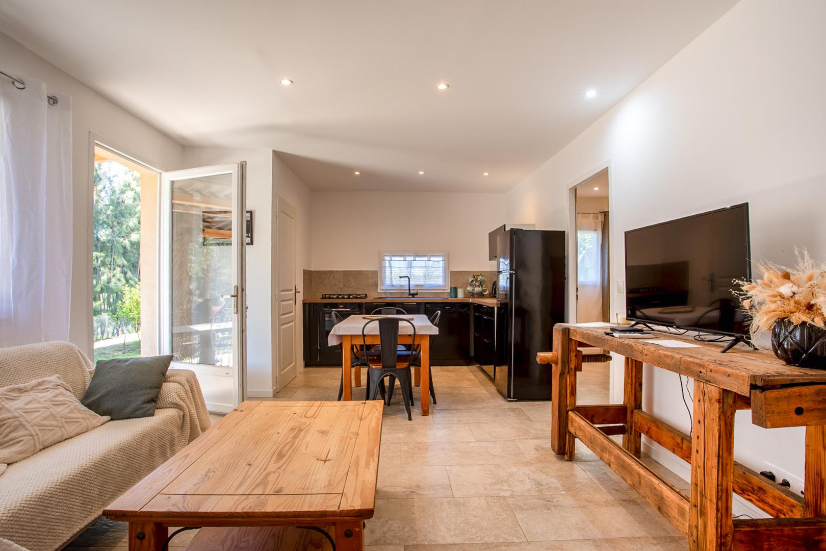1 Cuisine équipée • 1 salle de bain • 1 douche • 1 wc • 1 terrasse • 1 jardin